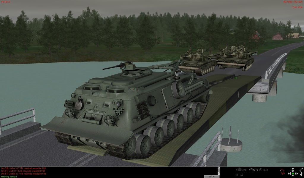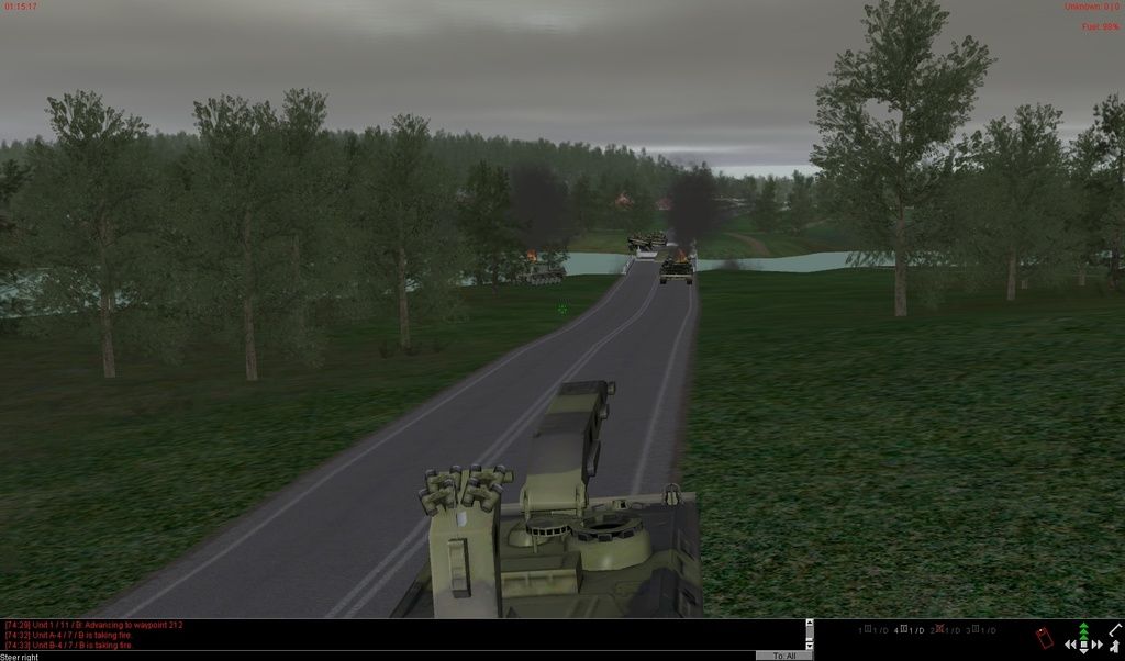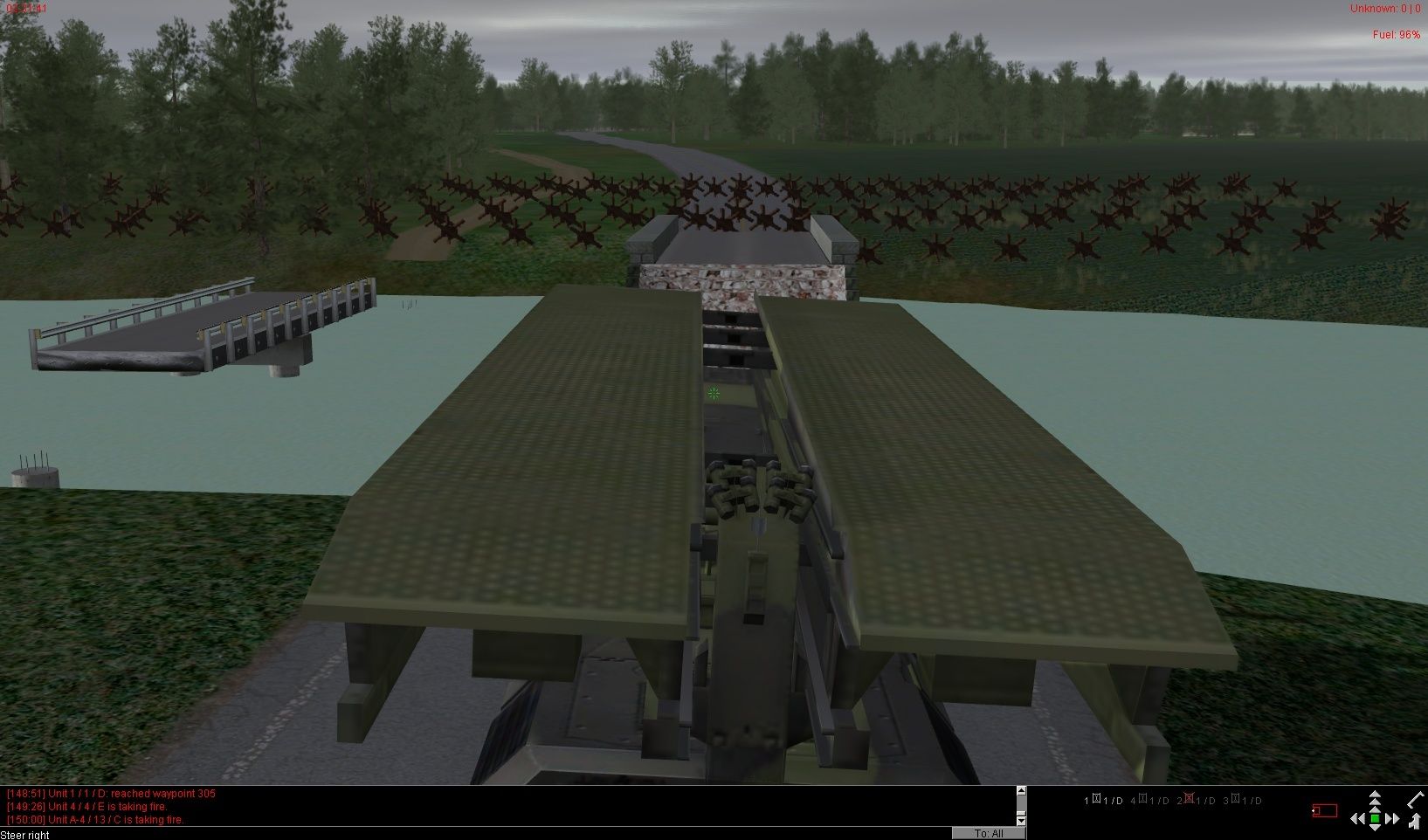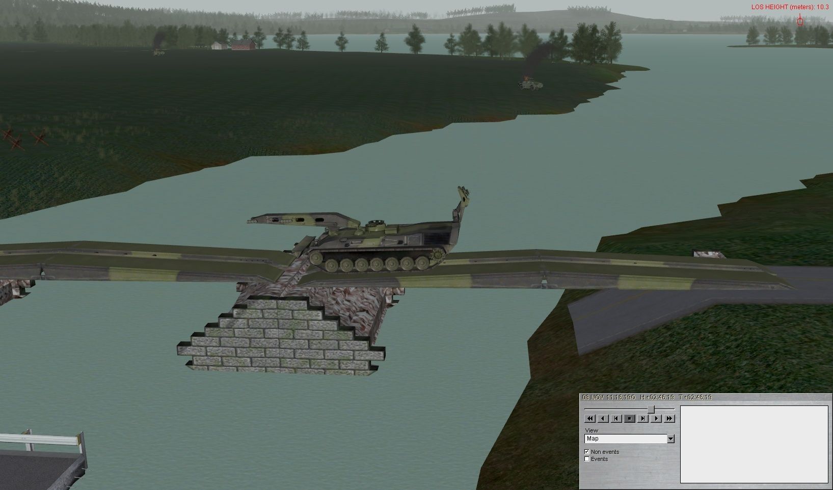 So... I tried to deal with problem, and moved recovery vehicle to clear the road. It had some success. - Just I did get few tanks over the bridge and then one of my tank slightly bumped knocked out tank, and lost driver! I moved there a recovery vehicle, and ICM strike. Well.. I moved another there and that's when I noticed that air strike had destroyed second part of the bridge. (I felt disbelief and anger of that. Mostly since. it started to look that there would be no way that red tanks, units would at all to get to other side of the river. Since of lacks in the simulation. In real life there would been mobile bridges and all kind of other stuff to be used but within simulation limits it was becoming impossible and way too difficult for one person to handle, in reasonable time amount.