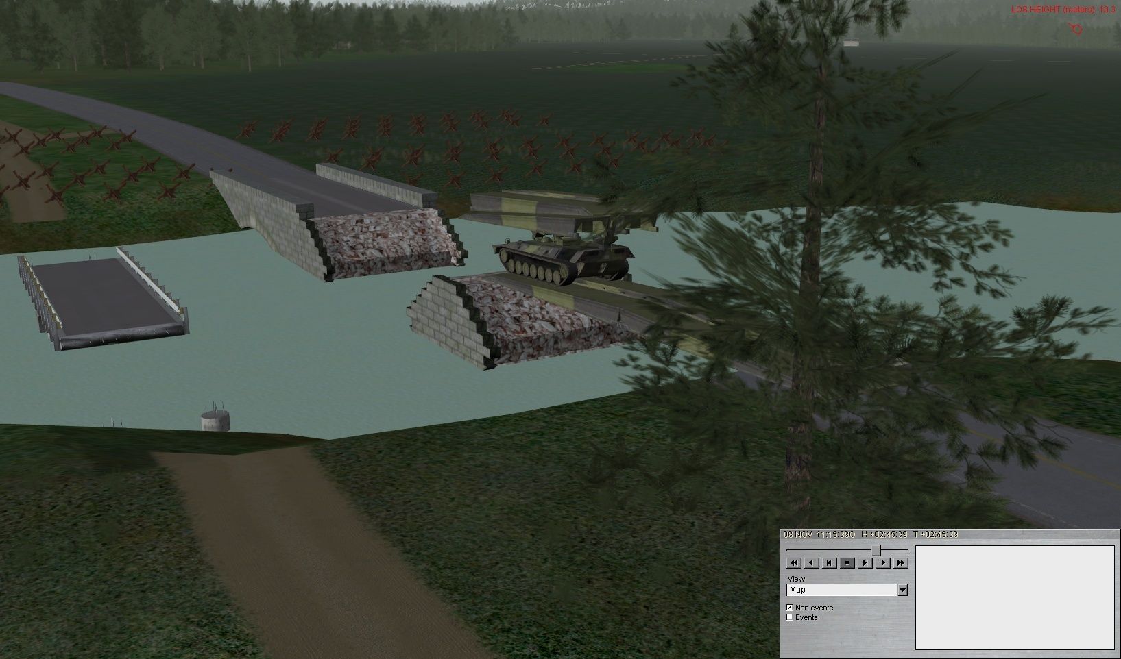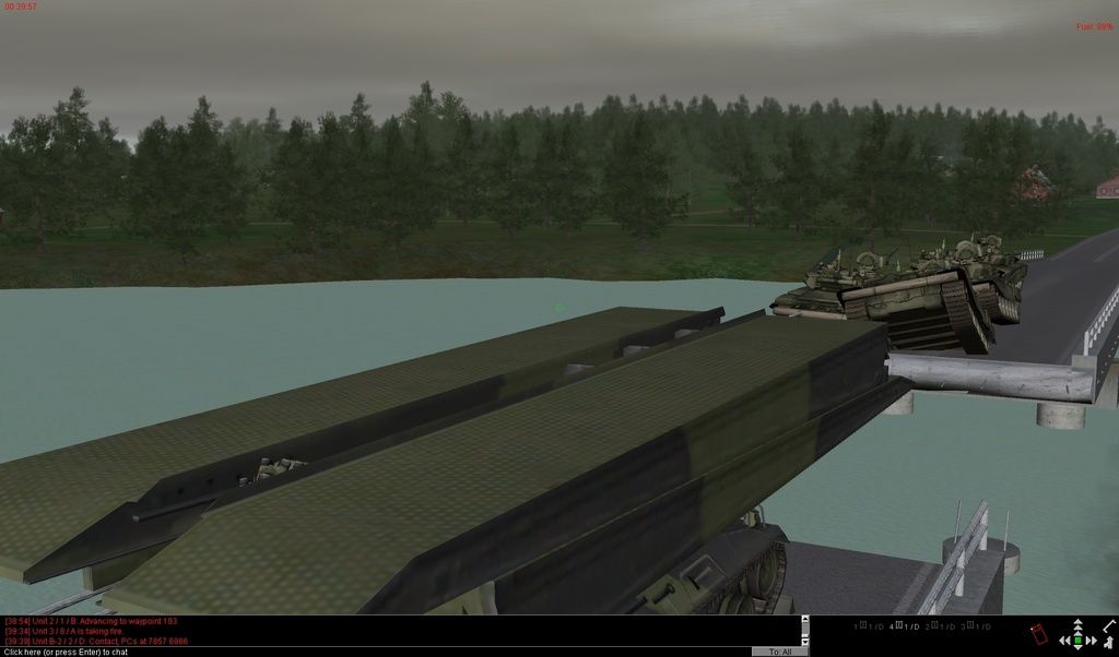 And here... below... you can see what happens when AI cannot detect that bridge has just blown up, to sky. Entire platoon and bit more of tanks drive off the dridge into hole IED blew up. And as more of tanks drove there.. they pushed tanks that had fallen into river, forwards and suddenly those popped back up to bridge, after sinking into water and basically becoming knocked out obstacles that all of sudden just appeared to bridge like if they would never been in water.