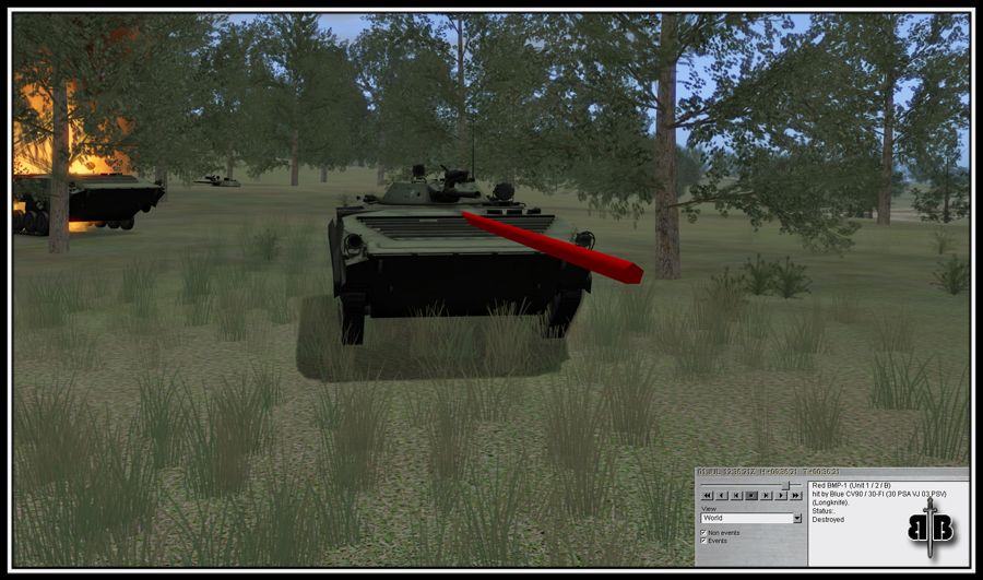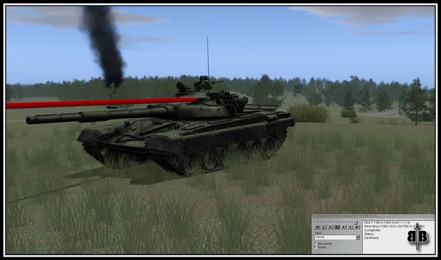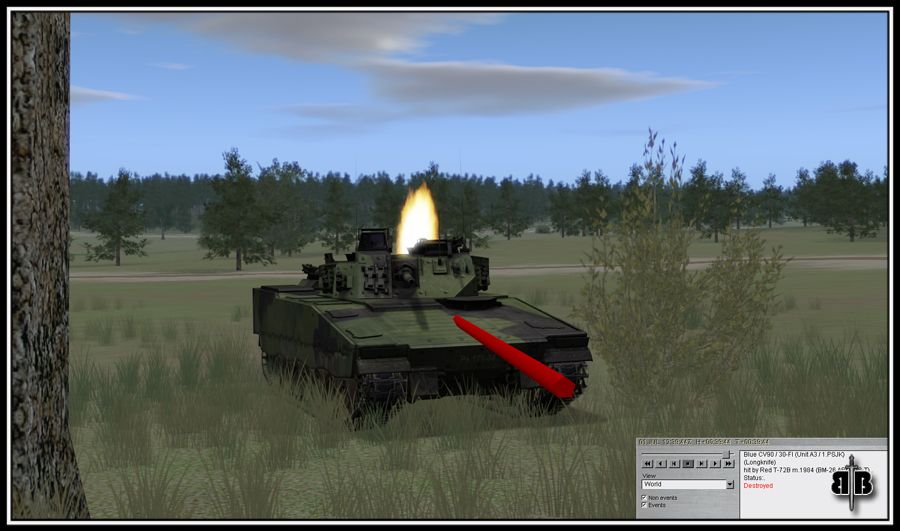 In the AAR of my 1st mission it said I had 2 kills. I was curious about that because I only recalled shooting at 3 vehicles so I reviewed the AAR closely. The 1st being the BMP thats burning in the above post. Lumi & Tantal were lighting him up so I put a cpl rounds into him as I creeped forward (to bad SB doesnt model the hits on the tanks. I bet it would have looked pretty entertaining). Surely I didnt get credit for him? The 2nd being the actual kill. He came into view as I was creeping forward & I sent 3 rounds into him. The 3rd was as we were retreating from a T72 that had crested a rise. I was reversing & fired 4 shots at him. 2 hit.