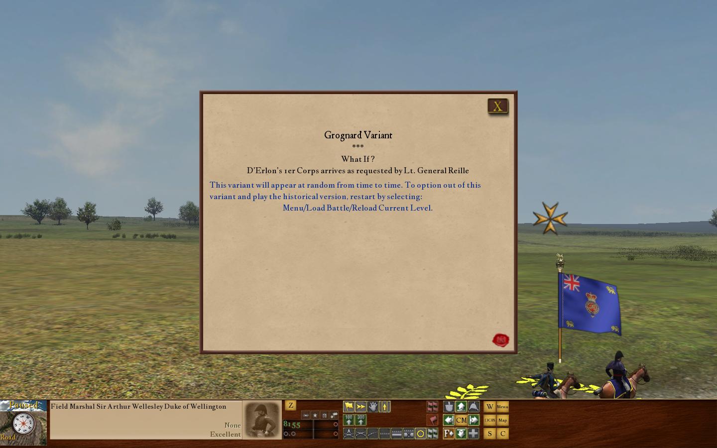 Scenario 5 puts the player in the role of the Duke of Wellington. The scenario lasts 3 hours of simulated time and starts at 2:00 PM. The forces available short at the beginning of the scenario, but reinforcements will arrive. The order of battle will expand in this manner until the forces under the player's command are a Corps (-). This scenario will keep players very busy, and victory is possible if they are good at delaying actions.