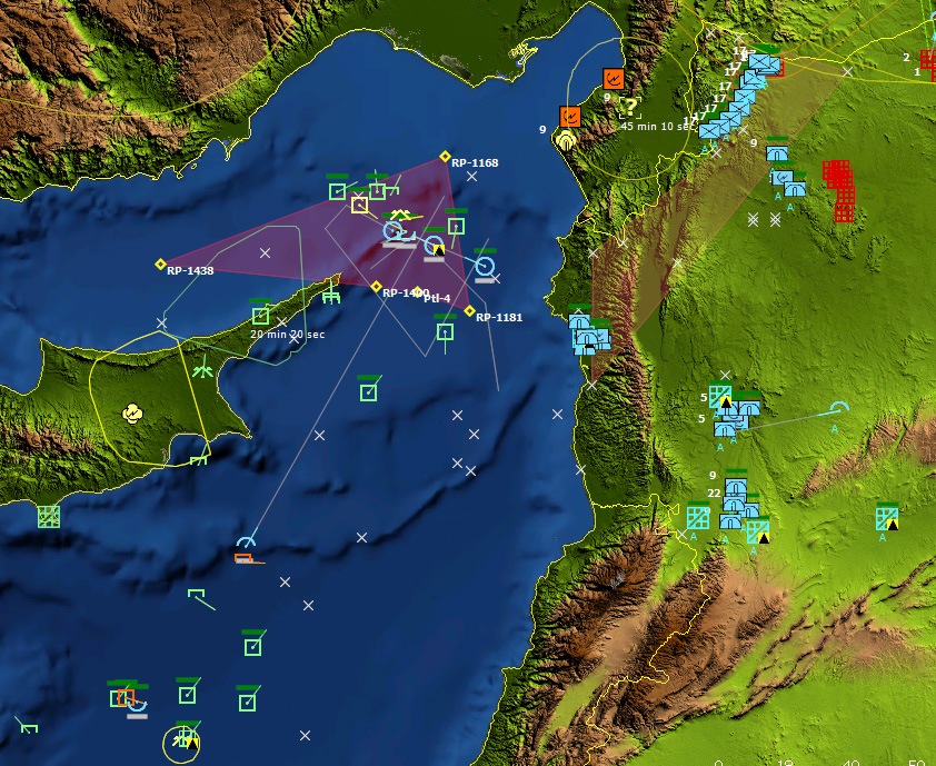 Cruise missiles (blue icons coming from the north) flying over Turkey on their way to ISIS targets. As the Russian player I have no control on firing them, but I know I will pay the bill with my precious forces for that show of force.Old Grudges is a proof that the engine can be used for professional-level rapid prototyping of contemporary conflicts. If you look beyond the technical specifications of the war toys (not implying that I consider anything to be wrong in CMANO's database), Old Grudges is chock-full of important issues in command, operational art, plus rapid and effective deployment for emerging threats.
