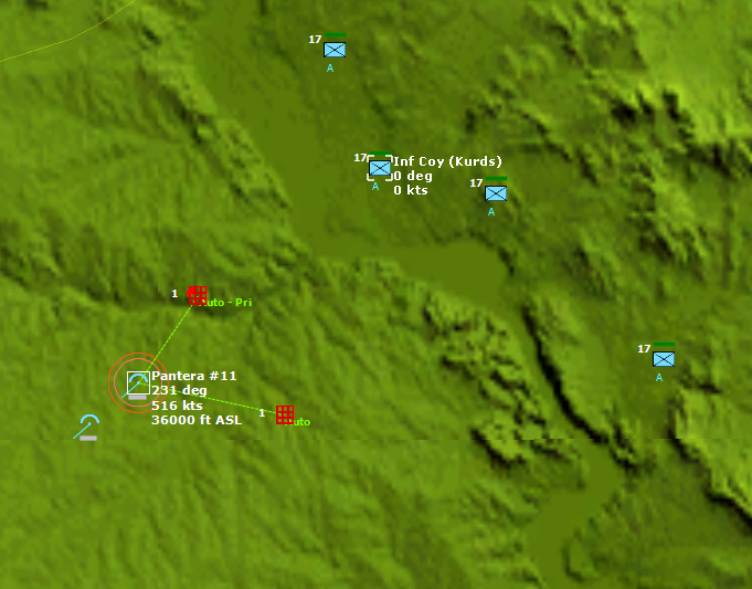 Two Russian SU-34 Fencers return to base after a successful strike mission on ISIS-operated oil rigs. Note the Kurdish militias east of the targets. They are allies (that's why they are labelled "A") and can't be controlled by the Russian player.Old Grudges' has a very thorough set of scripts and triggers under the hood. Just the orders of battle of the several sides present in the scenario are worth the price of admission.
