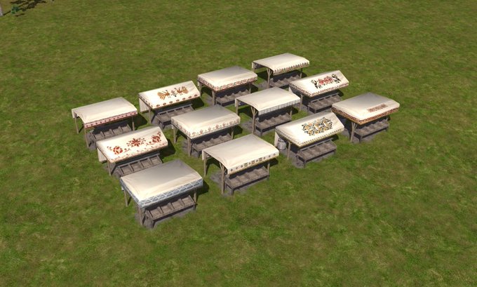 •   Added an ability to customize the look of market stalls. This feature will later be also implemented for other buildings