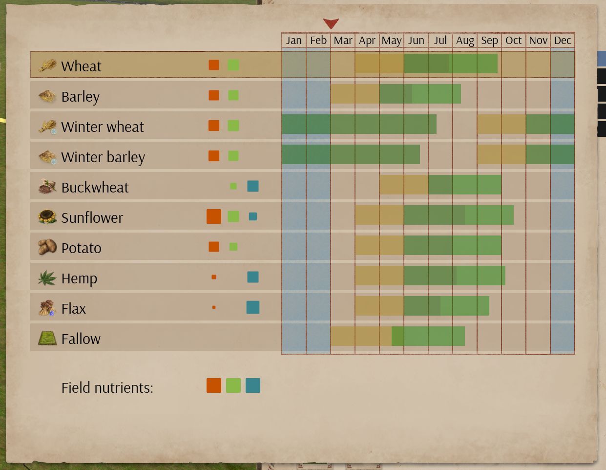 - Added winter varieties of wheat and barley (sown in autumn, slightly bigger yield)