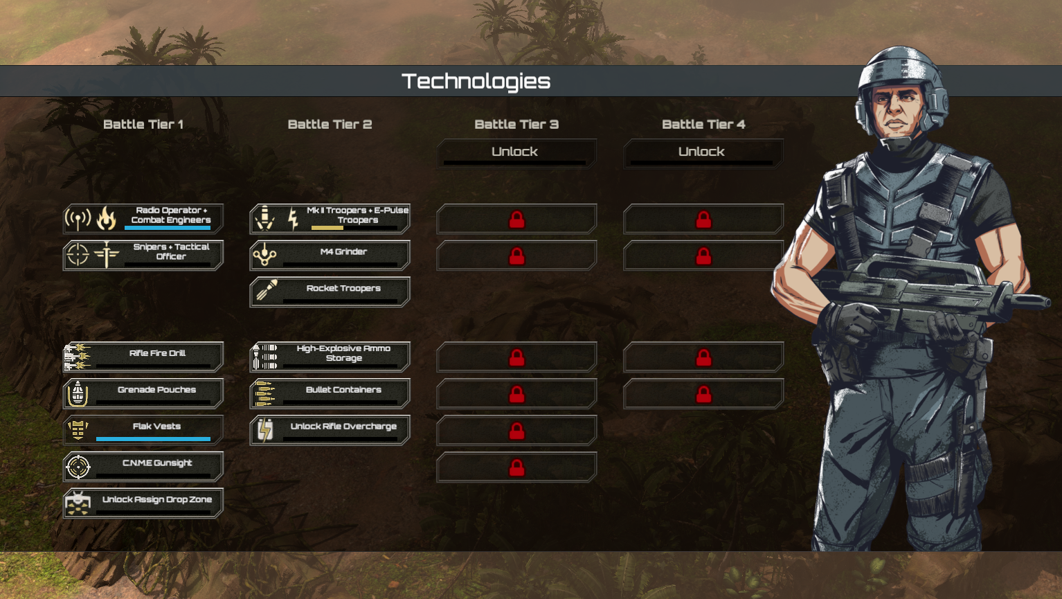 Territory Mode revolves around a new resource type. This resource is required to purchase new units, to reinforce squads that have taken casualties and to unlock technologies. These technologies will provide access to new unit types; and upgrades that expand the performance or abilities of your units.
