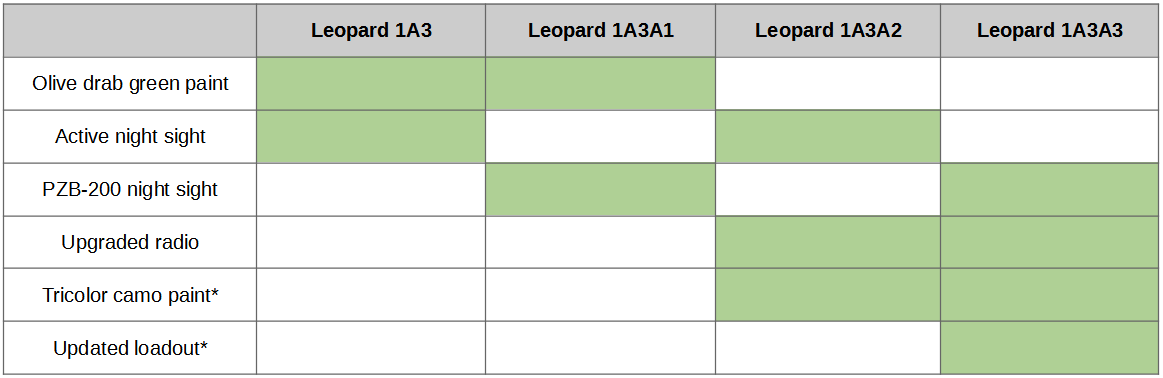 Of course, we have a new variant chart to cover the 1A3 family - this chart will also appear in the Leopard 1A3 gunnery guide when it's published.