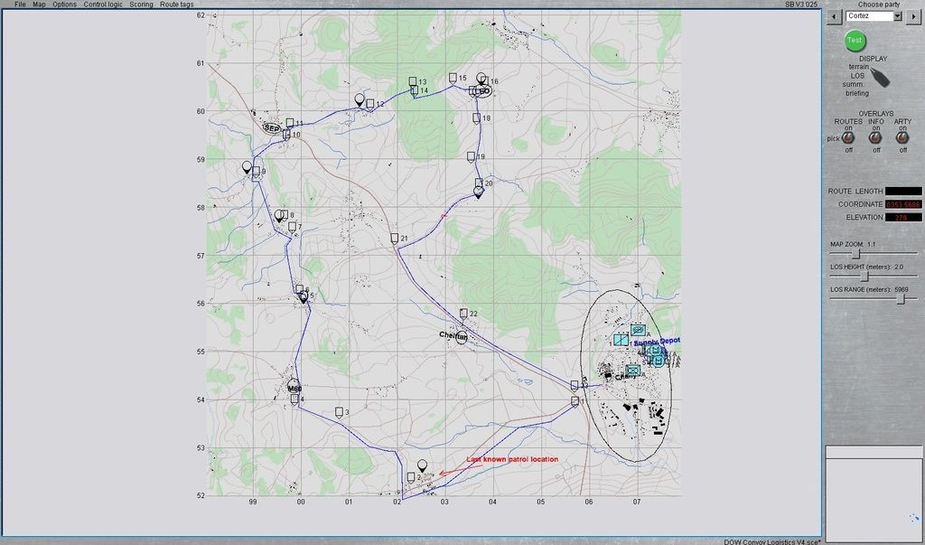Mission Summary :Escort a platoon of supply vehicle through the 21 checkpoints as the leader of the Spanish forces (Cortez). You must get supplies to the VEC reconnaissance units in the objectives. This is a combat logistical patrol exercise heavy. Configure your units, and tactics to deal with a British force (Bruce) of trucks, infantry, PCs, and possible tanks along your route or in the area of operations. No contact drive time is about 1 hour at medium speeds and no enemy contacts or engagements.