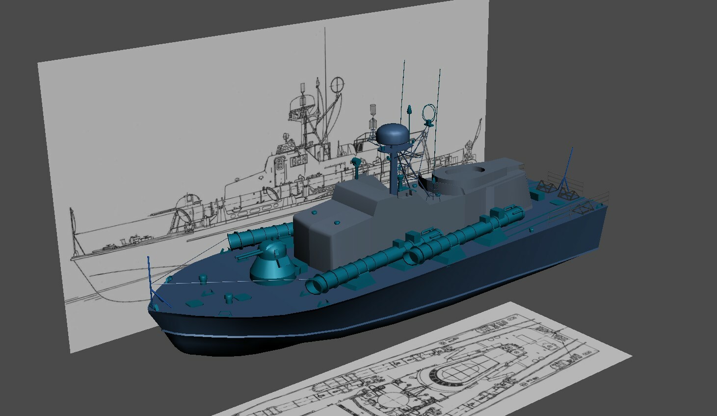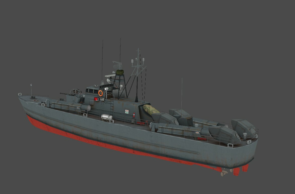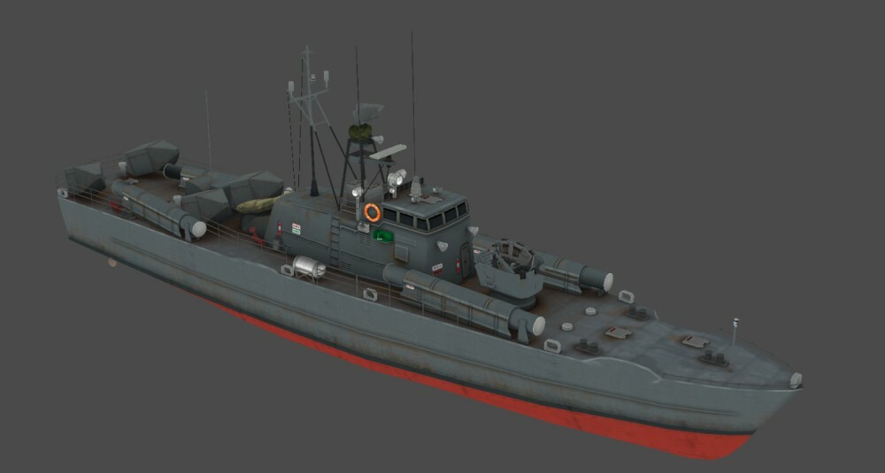 Mek has reverted to type (sorry Mek you know it is true) and started making armed speedboats again, this one is pretty special, it?s the Polish design Project 664 "Wisla". It has a top speed of nearly 50 knots because it's a CODAG (Combined Diesel and Gas Turbine). I always love to include these images of the ships being worked on as it lets you see the process that our artists go through.