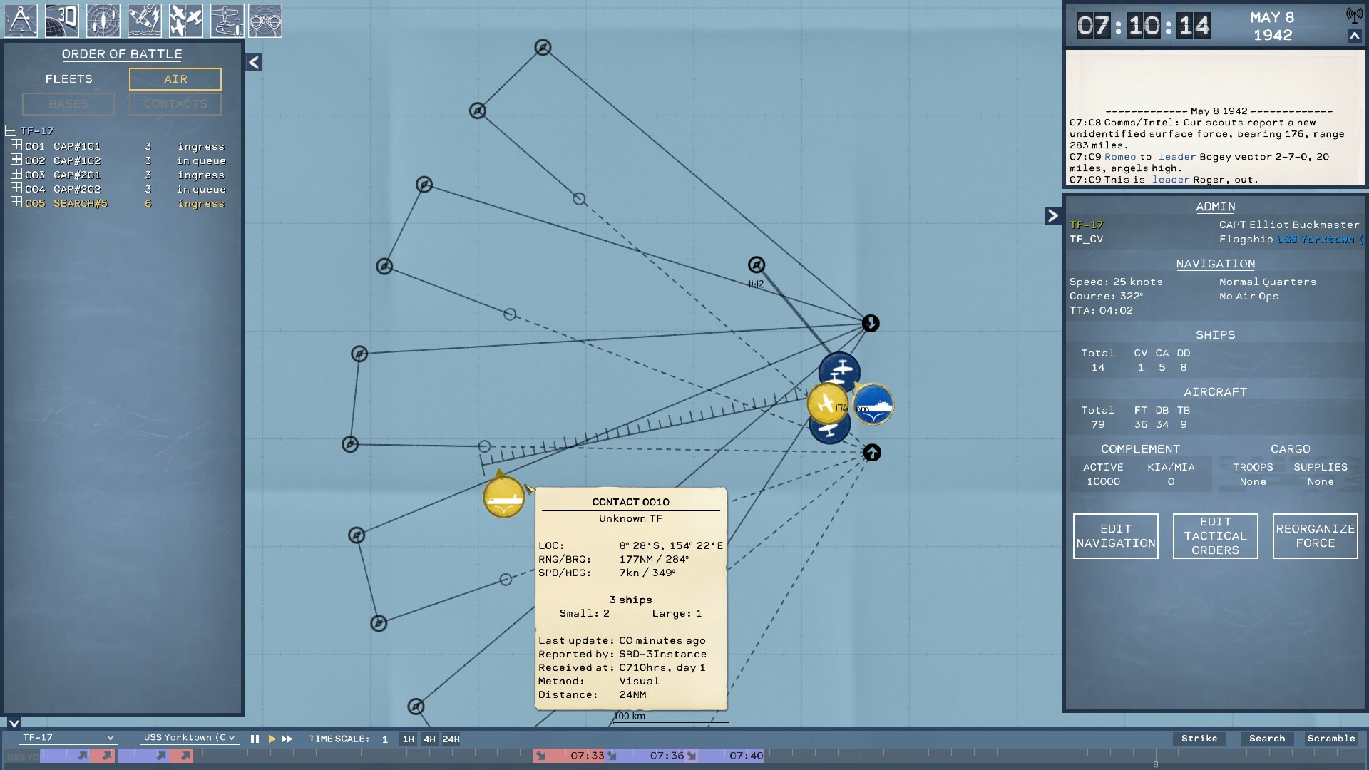 What is TFA you ask?"Task Force Admiral (volume 1: American Carrier Battles) is a full-3D, PC command simulation that is trying to recreate the complexity, the adrenaline and the uncertainty inherent to WW2 naval command. We are aiming at recreating the kind of product we used to play in the 1990s, when wargames and simulations were at their apex as gaming genres. To do so, we specifically aimed for good production values, hands-on diegetic interface and (hopefully!) a visible passion for the historical topic & its lore." - Drydock Dream Games