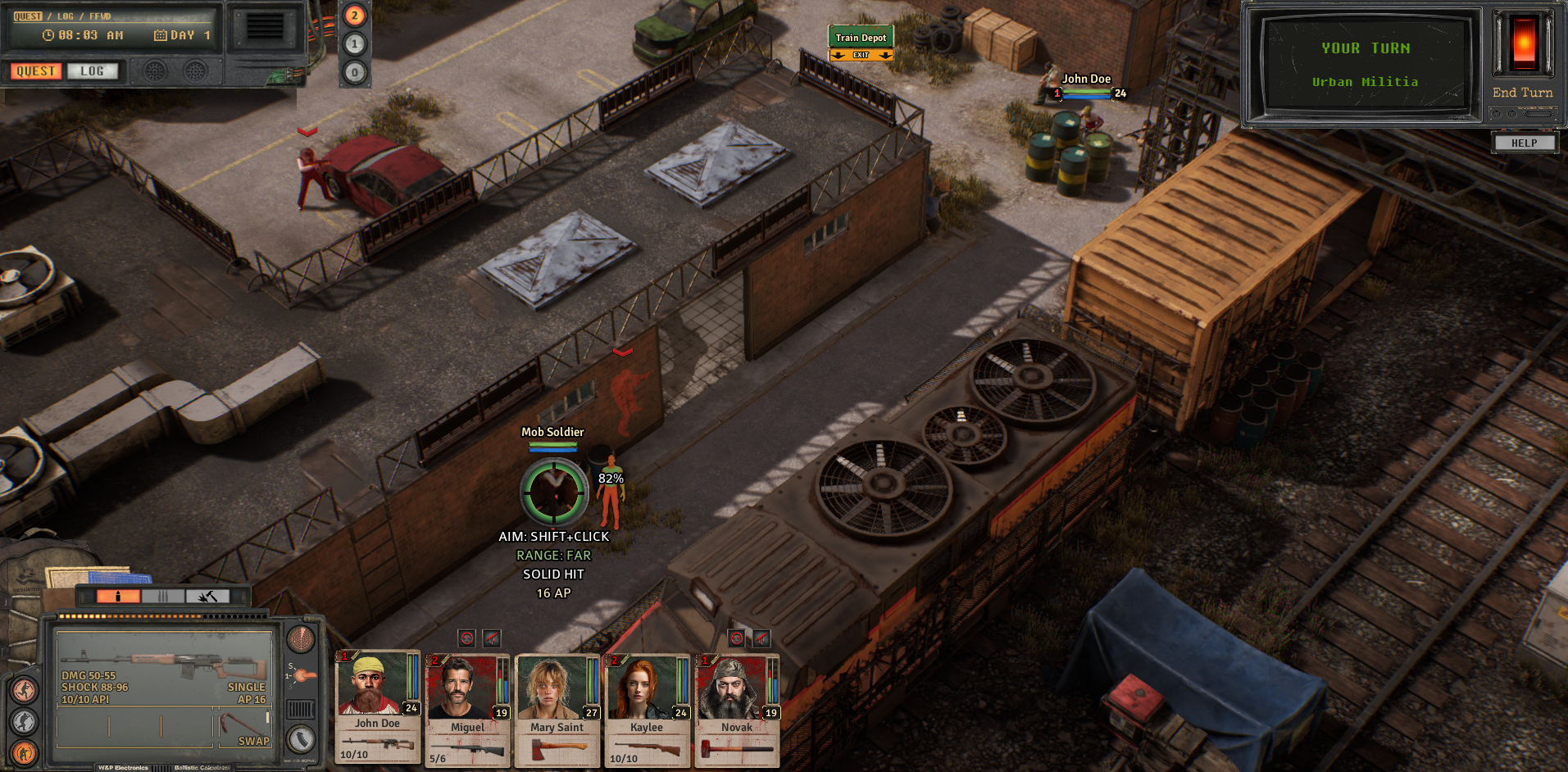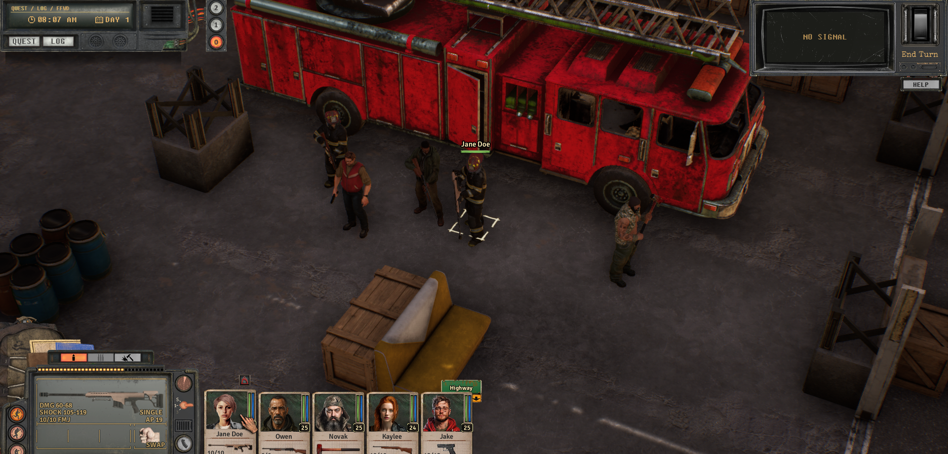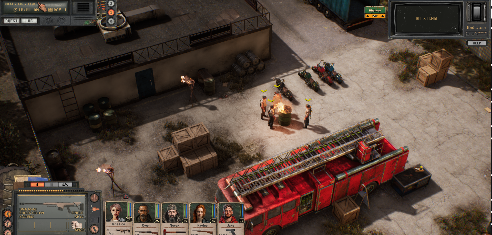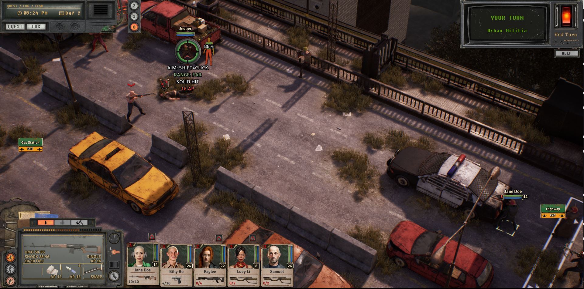 Your team and enemy factions (soon) will be able move between unlocked locations via vectorial routes. This is the first major step toward the dynamic endgame campaign we envisioned, allowing full simulation of faction wars ? human groups attacking each other and zombie hordes ravaging settlements regardless of allegiance. The travel times are now accurately scaled and that will allow us to estimate a campaign duration and rebalance the resources accordingly.