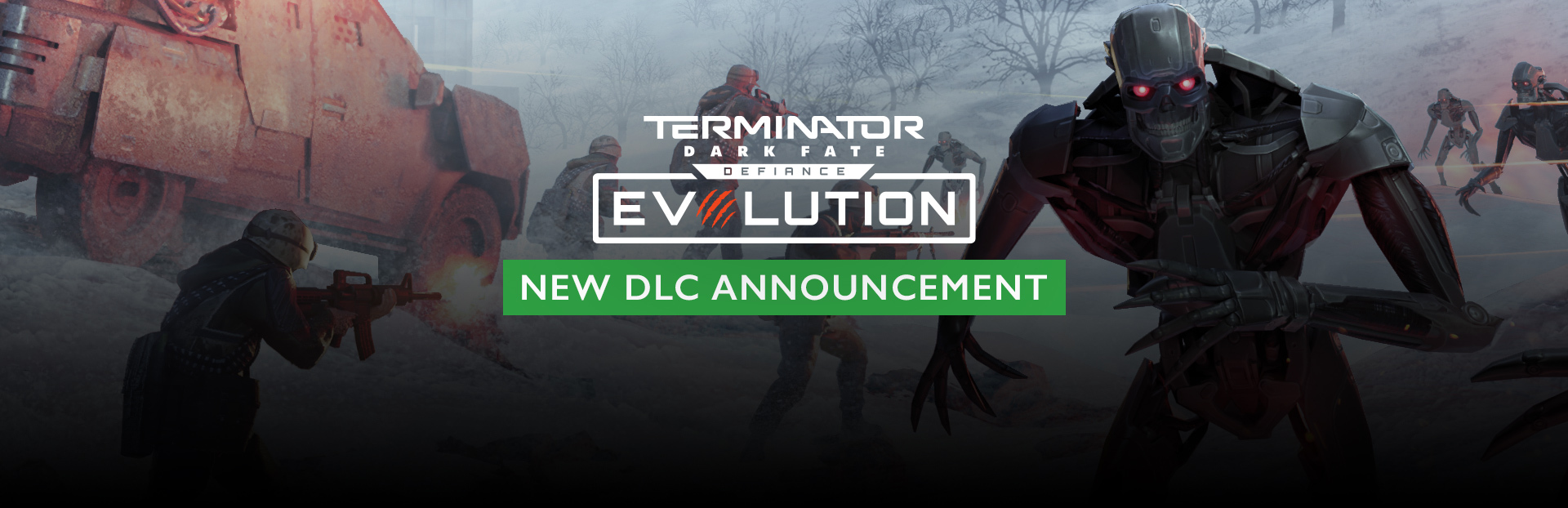 We?re excited to announce Evolution, the next major story expansion for Terminator: Dark Fate ? Defiance. This DLC pushes the war into the frozen north of Canada, where Legion is developing its most dangerous machine yet.