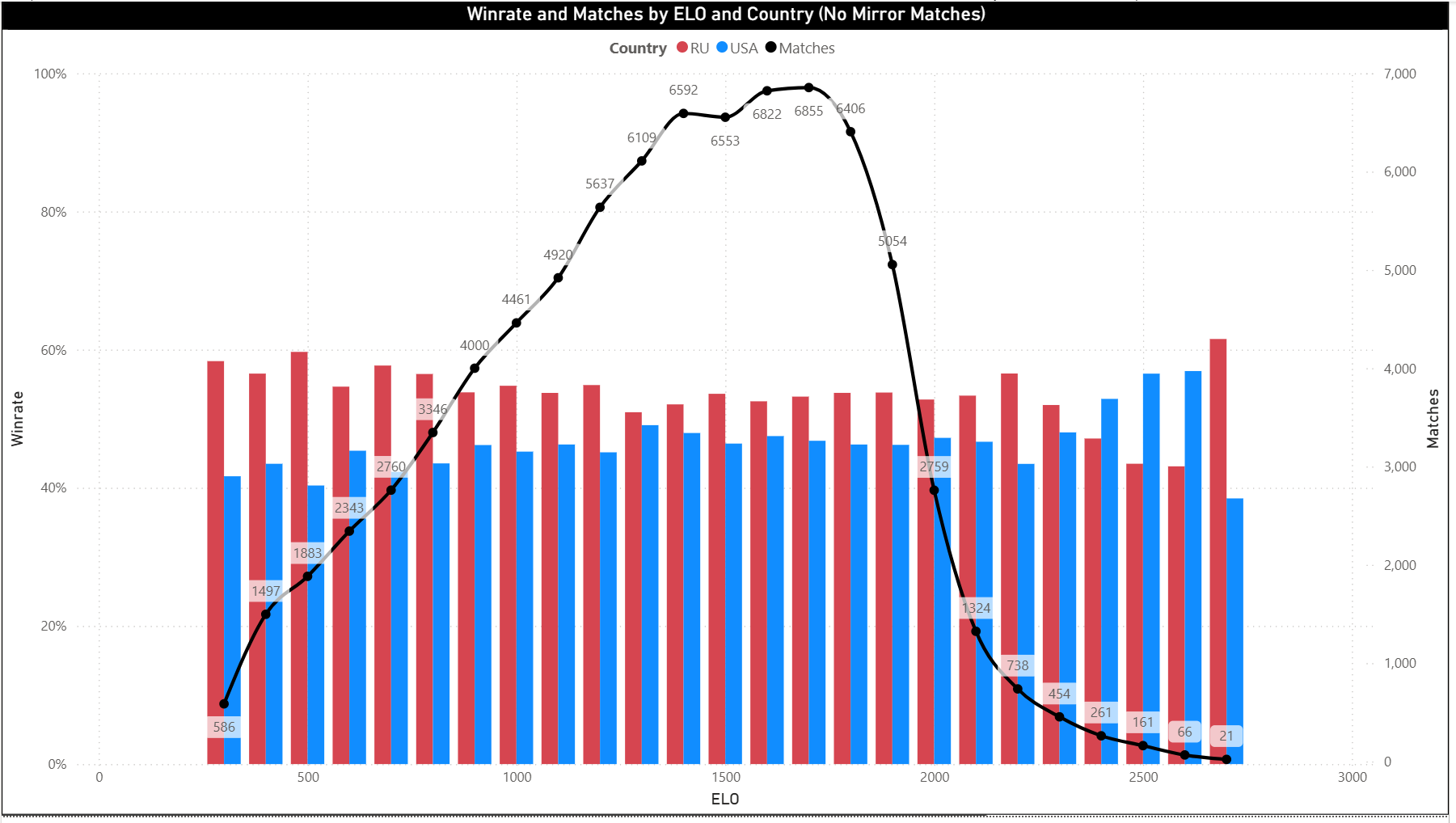 Let?s start with a dataset whose accuracy has been debated since its release: win rates by nation (without ELO segmentation). As you can see, these figures have remained largely unchanged over time, with a consistent difference of about 7%.