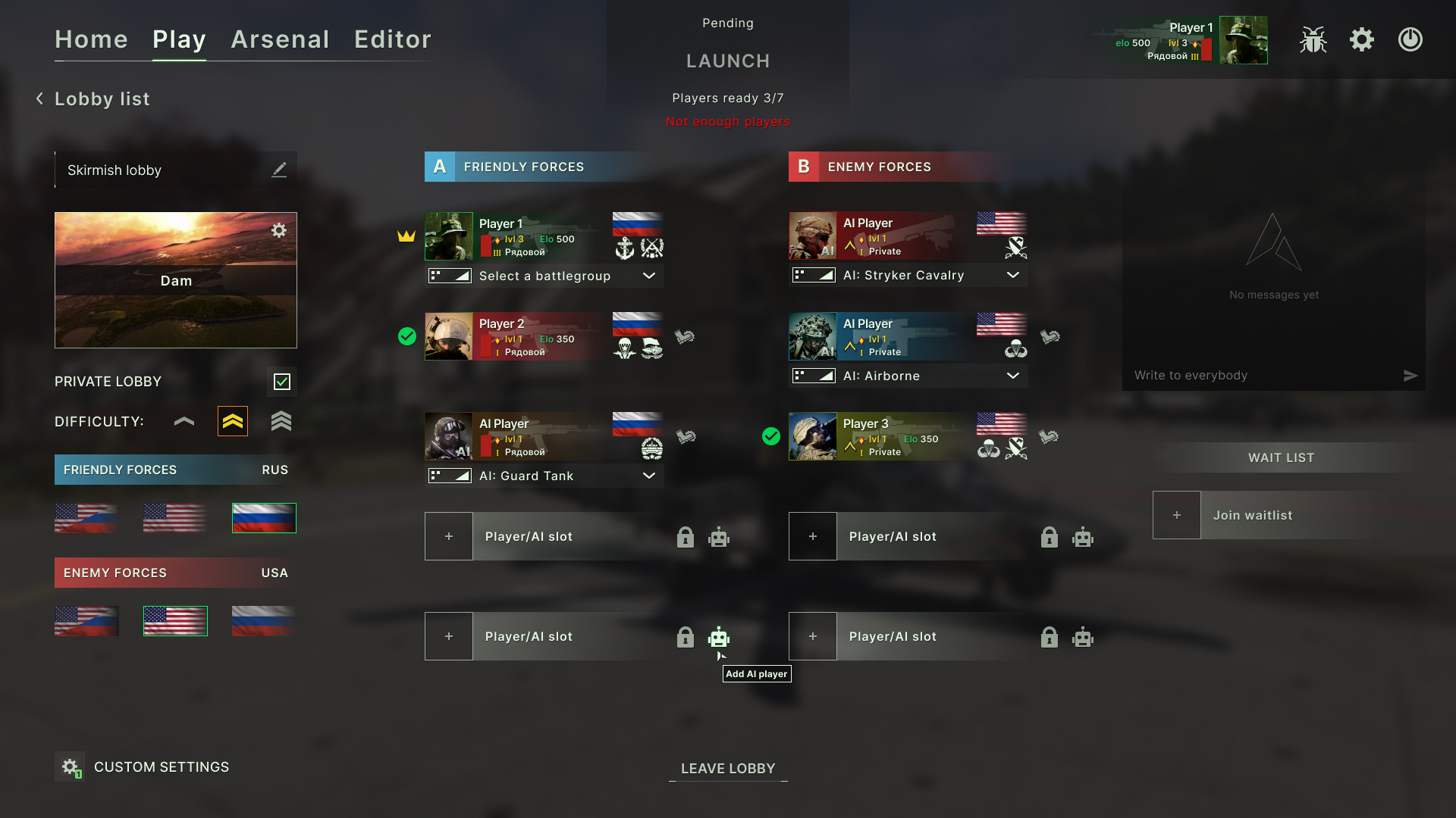 To make interactions more convenient, we are expanding the lobby functionality. Players will soon be able to assign bots to any available slot on either side. The rest of the settings remain the same: difficulty level and specialization can still be customized. This creates space for experimentation ? you can form teams, balance forces, or try out new tactics.