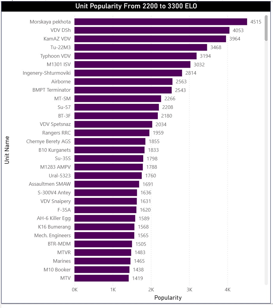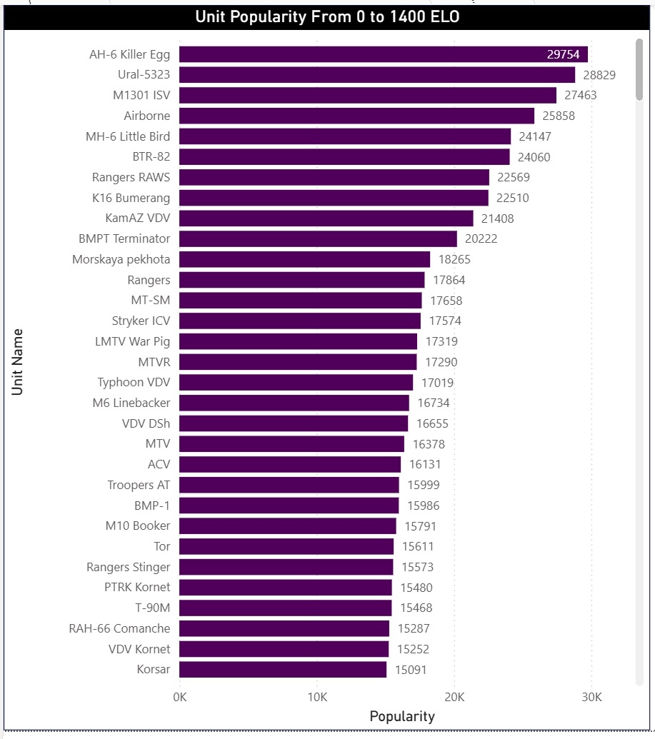 Finally, we?ve included a list of the most popular units, segmented by ELO. These tables show which units are considered the most effective and are most frequently used by players at various skill levels. The dataset also includes mirror matches, though the findings remain highly insightful.