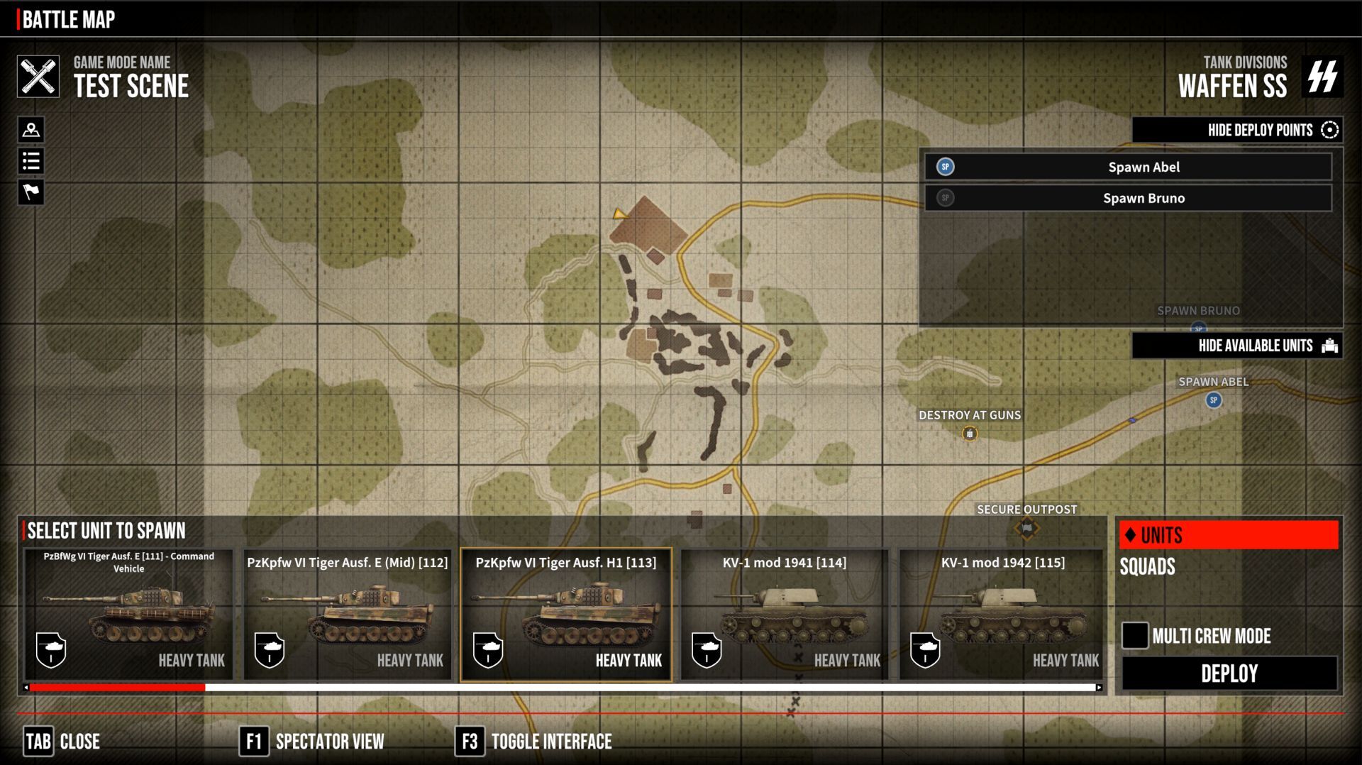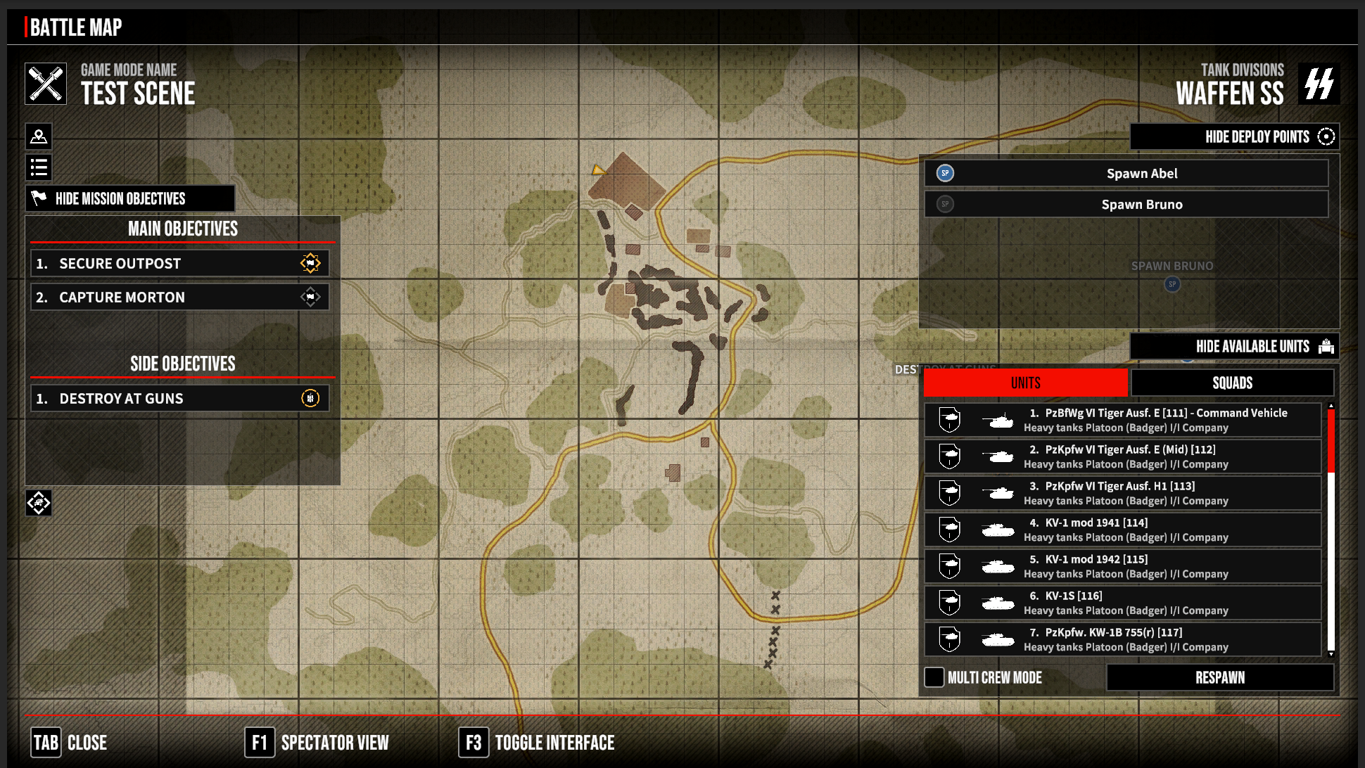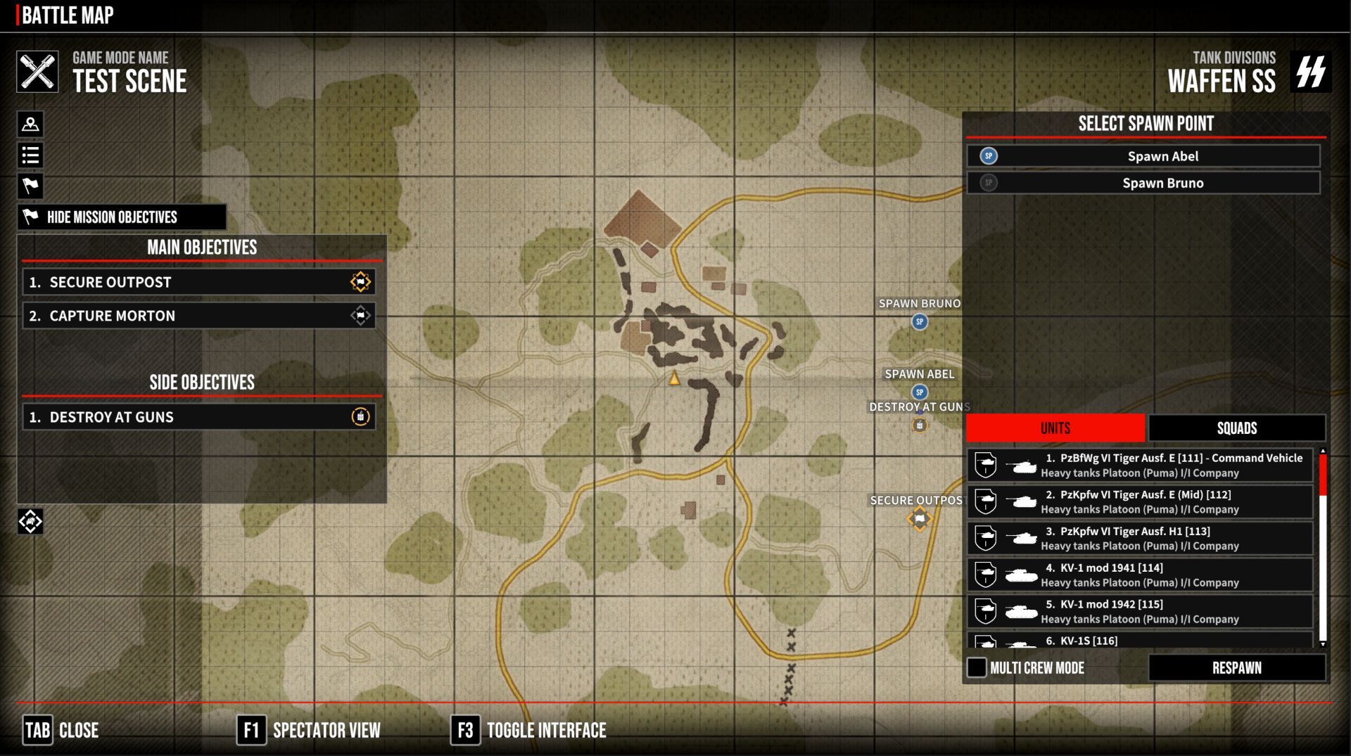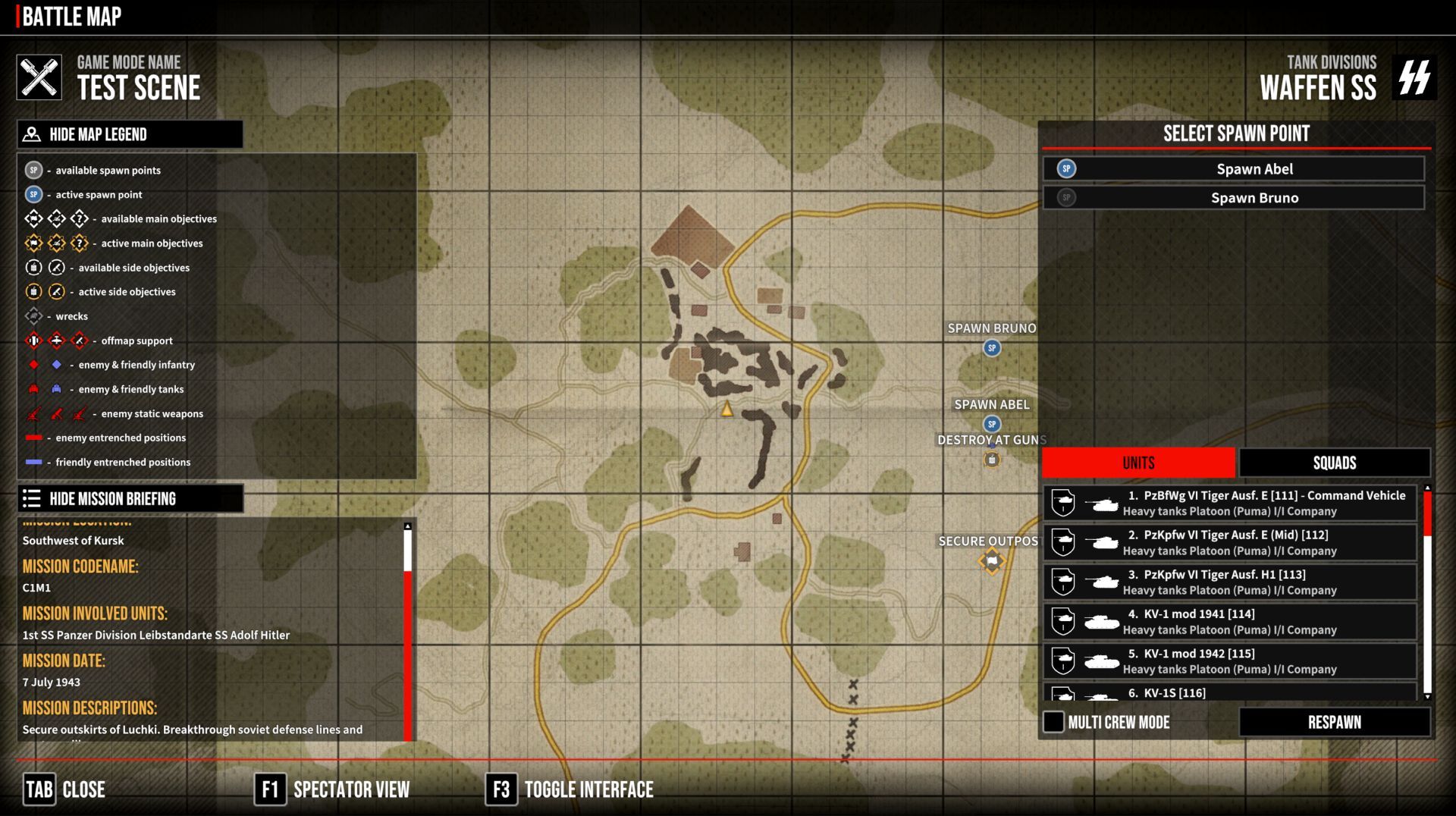The plan is to make the icons on the map, e.g. respawn markers, interactive. For example, clicking on the Abel point on the map rather than in the list will mark it as a respawn point. Similarly, clicking on a vehicle that operates in Multi Crew mode, for example, will open a small menu next to it with a selection of slots in the tank, allowing you to respawn inside it.