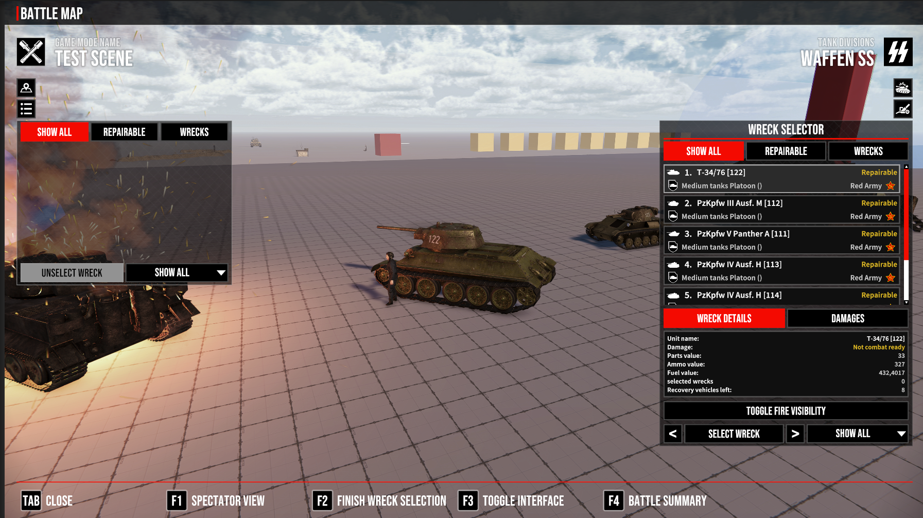 Another part we wanted to overhaul was vehicle physics as this was the biggest CPU drain during battles. We tried two new approaches, both failed, they did not bring any optimization. In the end, we?ve switched and tracked down other optimization problems and we have good results here, with stress test scene set up for 30 tanks, 200 infantry and 30 static guns (so totally 440 infantry as 150 tank crewman (30 tigers, each 5 crewman) and 90 static guns crewman (each 3).