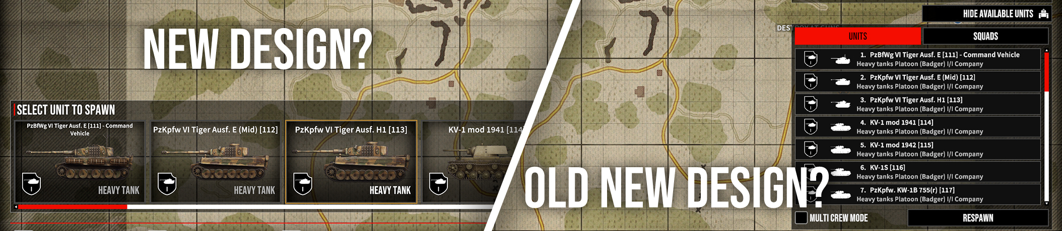 Why "new" UI. We would not call it new but rather improved. We have to make some adjustments here and there to be able to add features like matchmaking, workshop support or in future better organised battle maps with the whole map on a screen like in other tactical games that could include adding waypoints, orders on a map essentially more tactical tools - but that is melody for next months. Let's go back to the main menu?