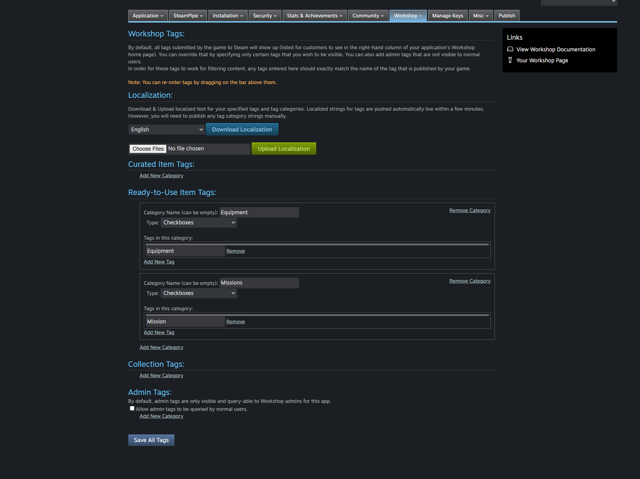 - [Workshop] Added Equipment tag to items uploaded through the Workshop menu.