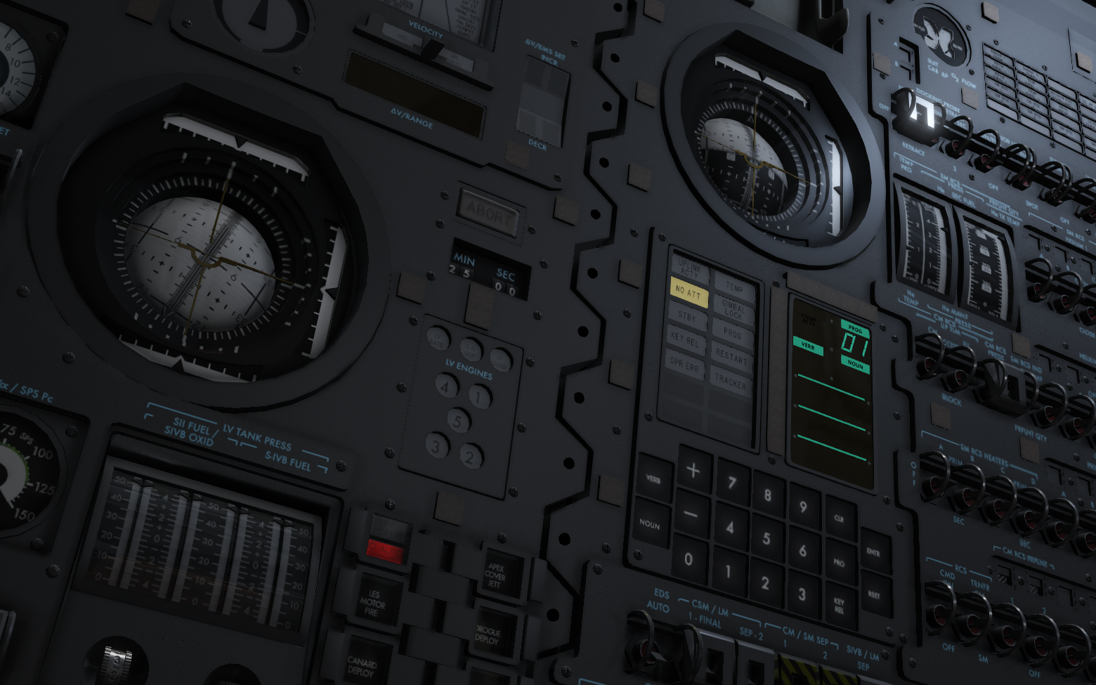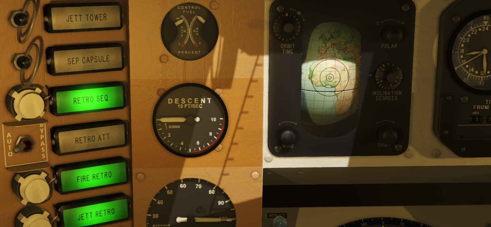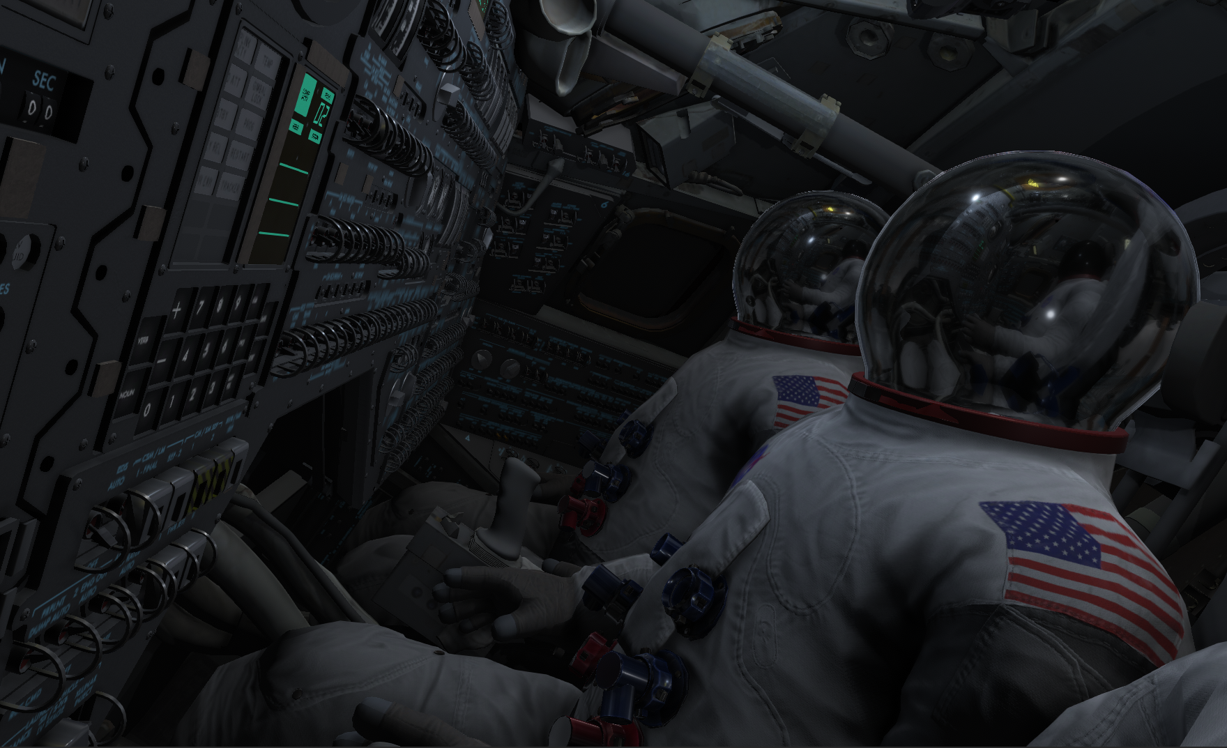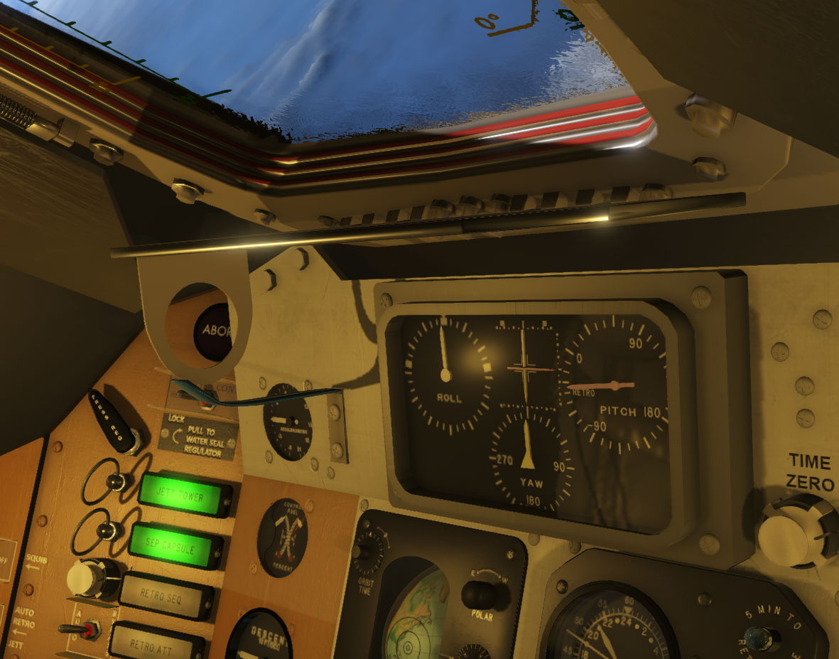 As I was fixing some issues with rendering and lighting conditions in the cockpits, along with re-enabling bloom, and decided to take a few hours to improve some of the elements inside the Mercury cockpit. This is the oldest craft, but the first step for most new players. When you enter the cockpit you will see new and improved cockpit indicator lights, fixes to a few gauges, updates to the Earth Path Indicator (EPI) model, and general fixes to various interactable components. I have also fixed an issue with the SSAO layer that could cause barely visible dark lines (artifacts).