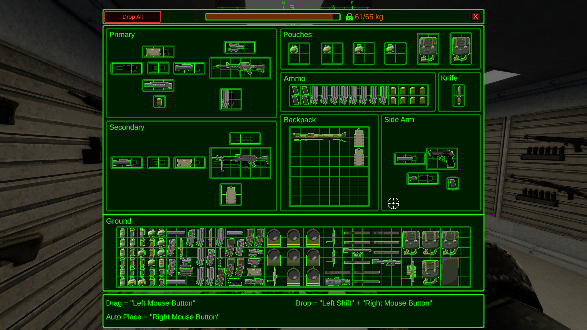 •     [Equipment] Fixed drone weights showing 1kg.